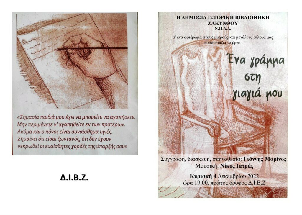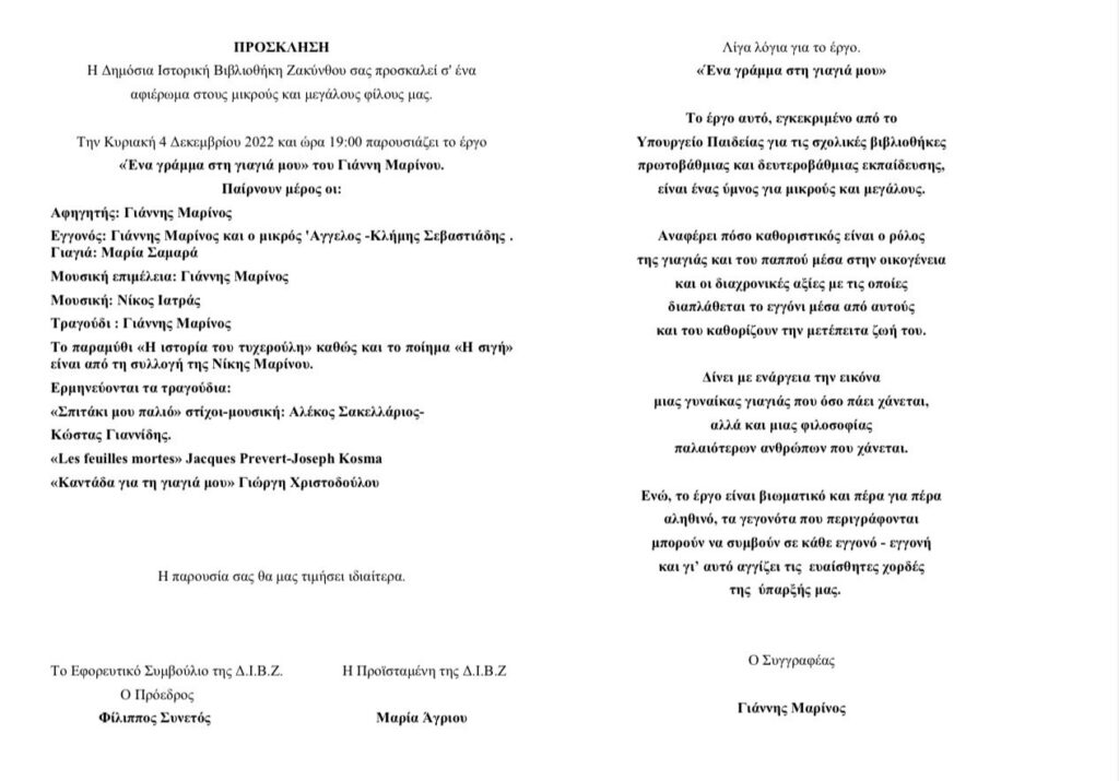 Θεατρική Παράσταση «Ένα γράμμα στη γιαγιά μου» του Γιάννη Μαρίνου