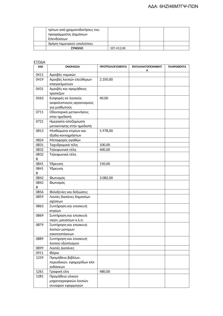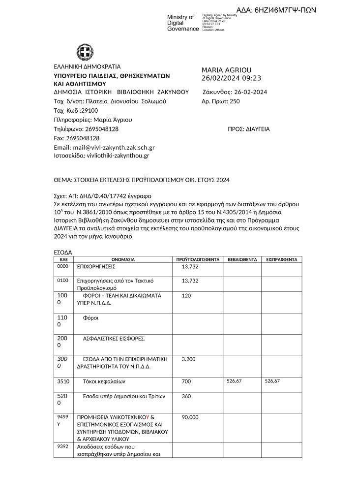 ΣΤΟΙΧΕΙΑ ΕΚΤΕΛΕΣΗΣ ΠΡΟΫΠΟΛΟΓΙΣΜΟΥ ΟΙΚ. ΕΤΟΥΣ 2024